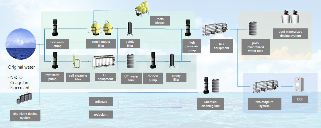 Basic process selection: Filter+UF+SWRO+ sterilization